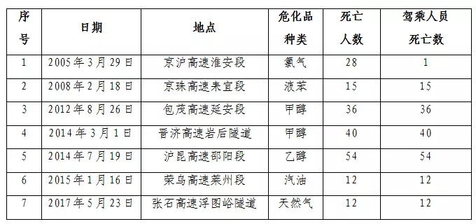 2008年以來(lái),全國(guó)各地發(fā)生多起重特大?;返缆愤\(yùn)輸安全事故,其中,2012年“8.26”包茂高速甲醇運(yùn)輸爆炸事故、2014年“3.1”晉濟(jì)高速甲醇運(yùn)輸隧道燃爆事故、2014年“7.19”滬昆高速乙醇運(yùn)輸火災(zāi)事故分別造成的死亡人數(shù)甚至超過(guò)了30人。?;返缆愤\(yùn)輸安全管理問(wèn)題已經(jīng)引起社會(huì)的廣泛關(guān)注。